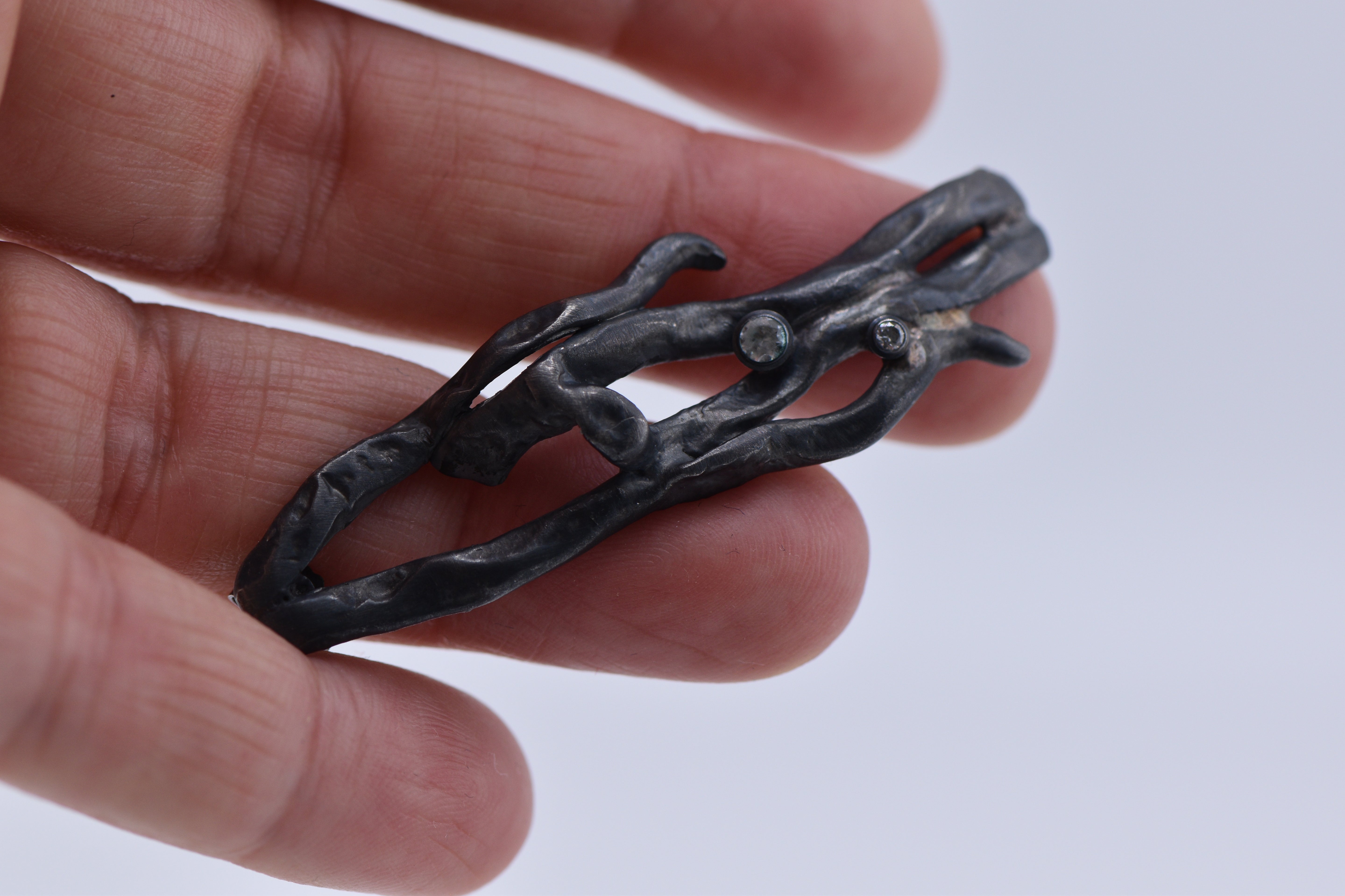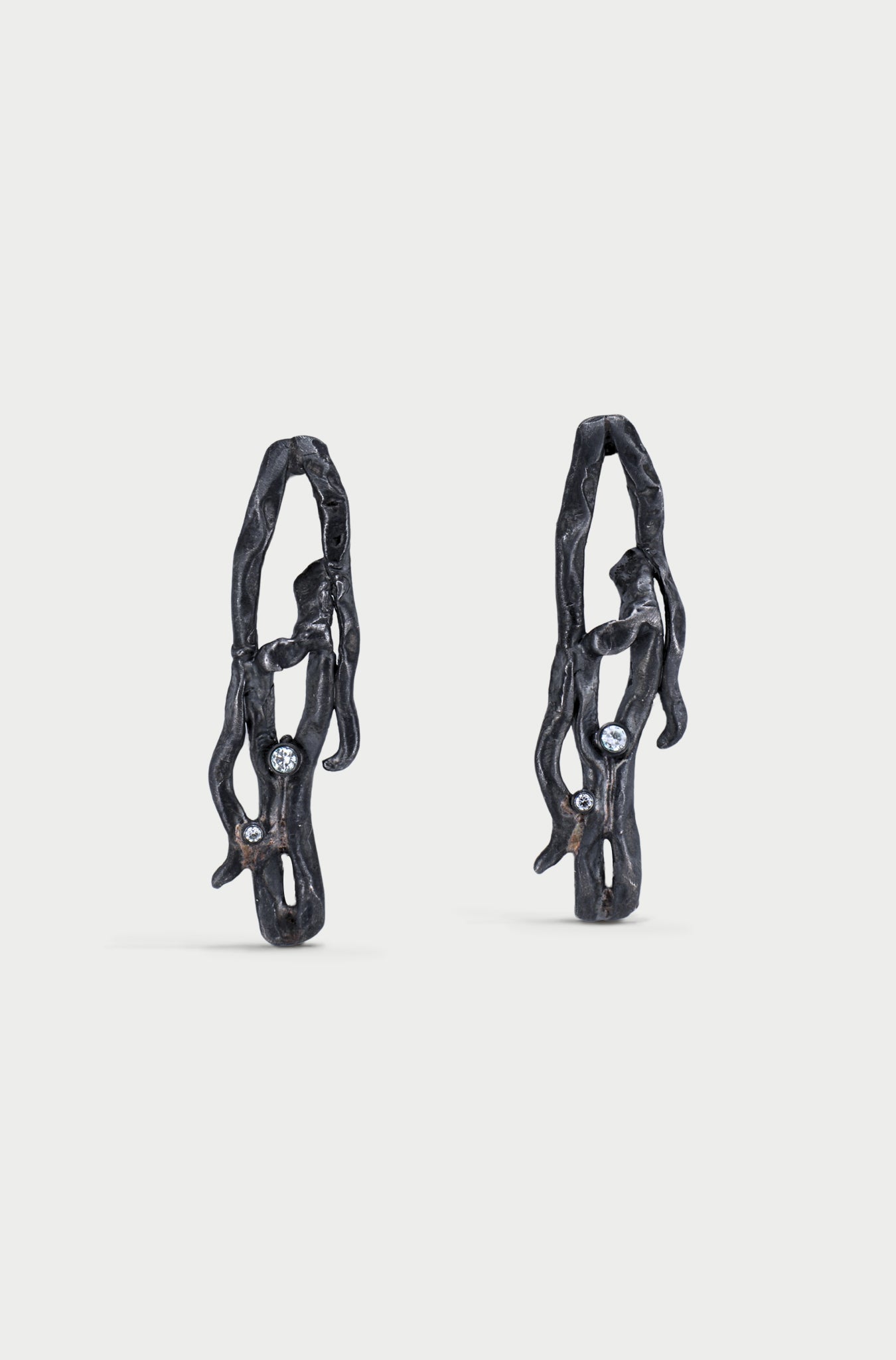 Kolczyki z kolekcji Edera wykonany ze srebra, inspirowany fragmentem rośliny bluszcz. Przyciąga uwagę swoją niecodzienną, rzeźbiarską formą.