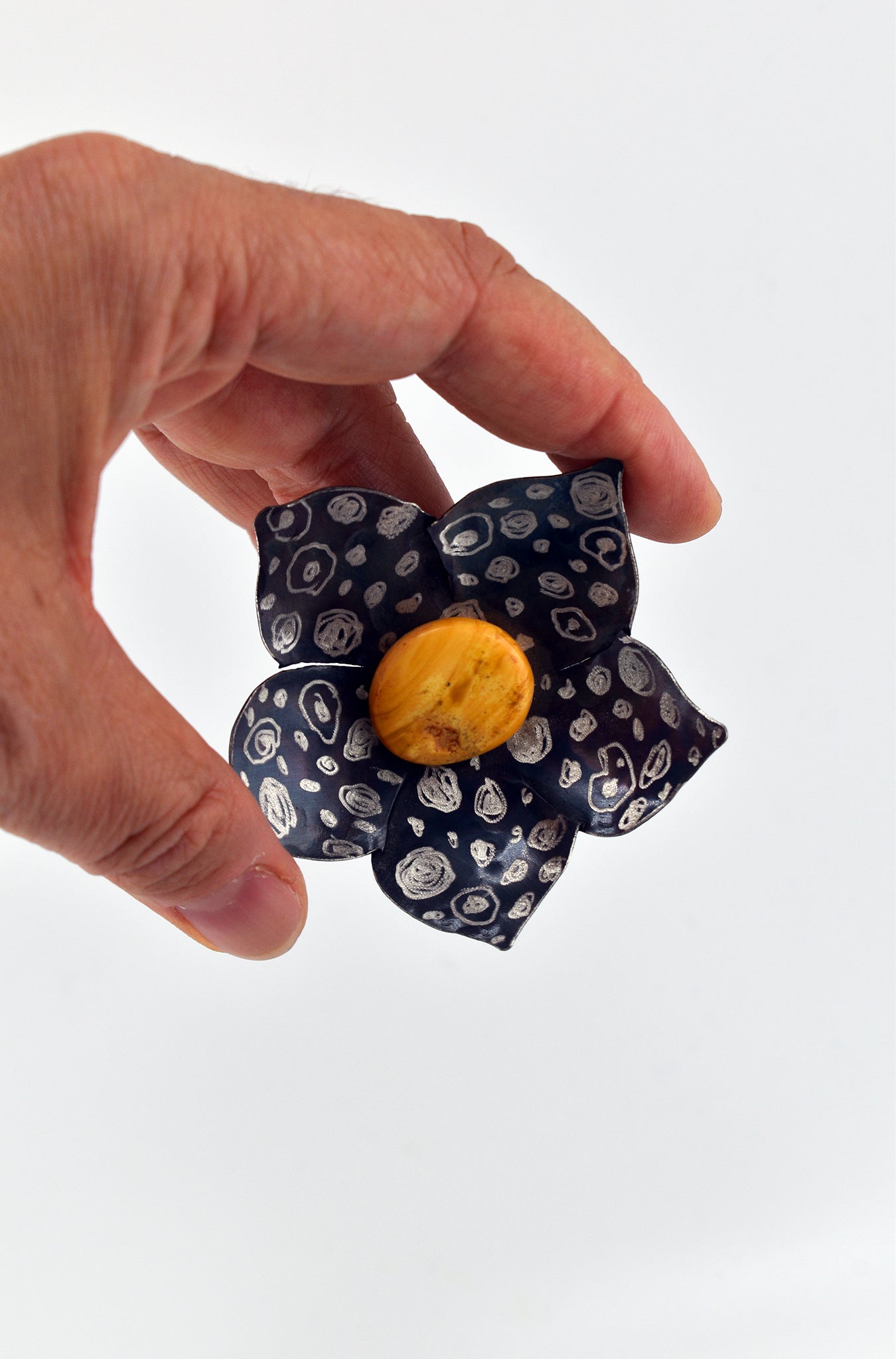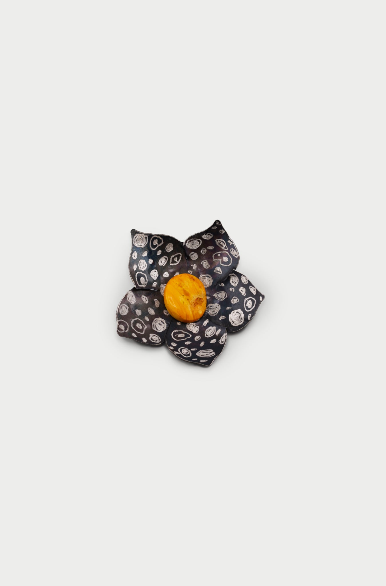 The brooch from the Flower collection is made entirely of gold-plated silver with the addition of a white pearl.