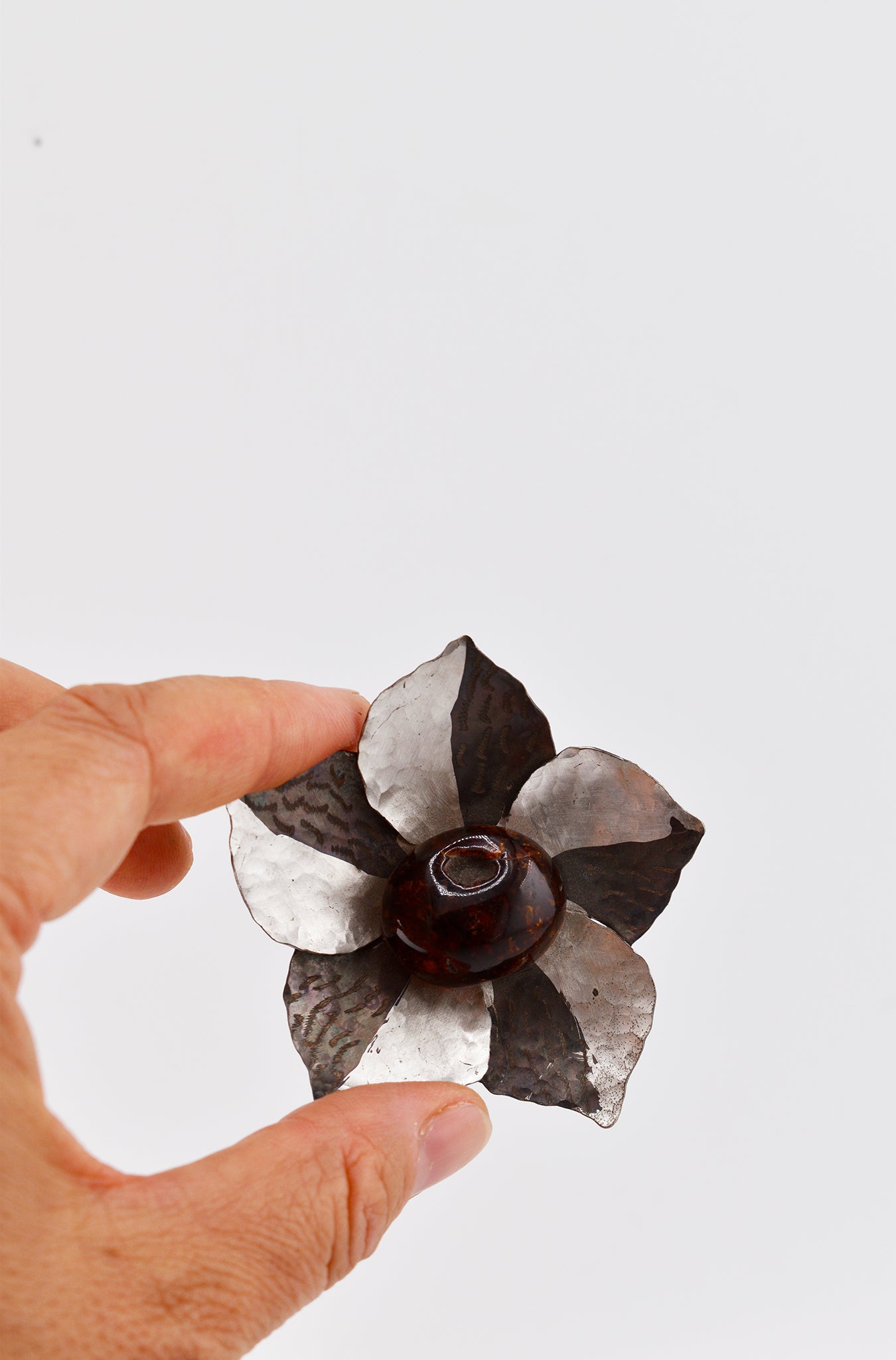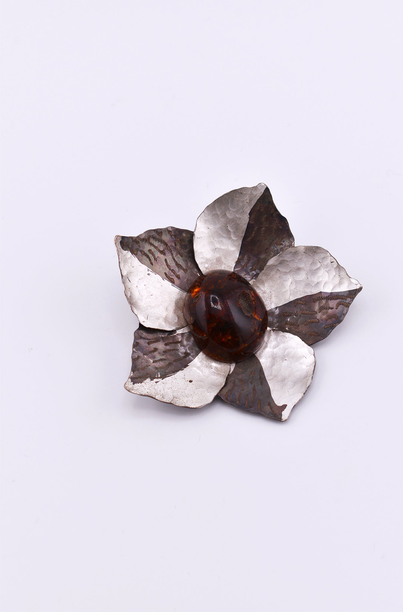 The brooch from the Flower collection is made entirely of gold-plated silver with the addition of a white pearl.