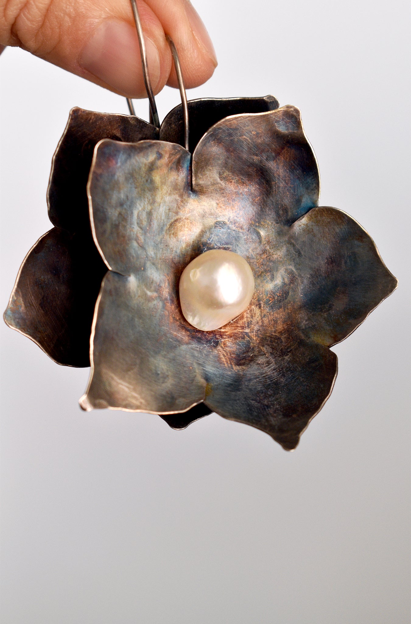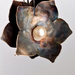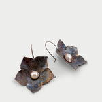 Flower Pearls - pendientes de plata oxidada con perla color crudo