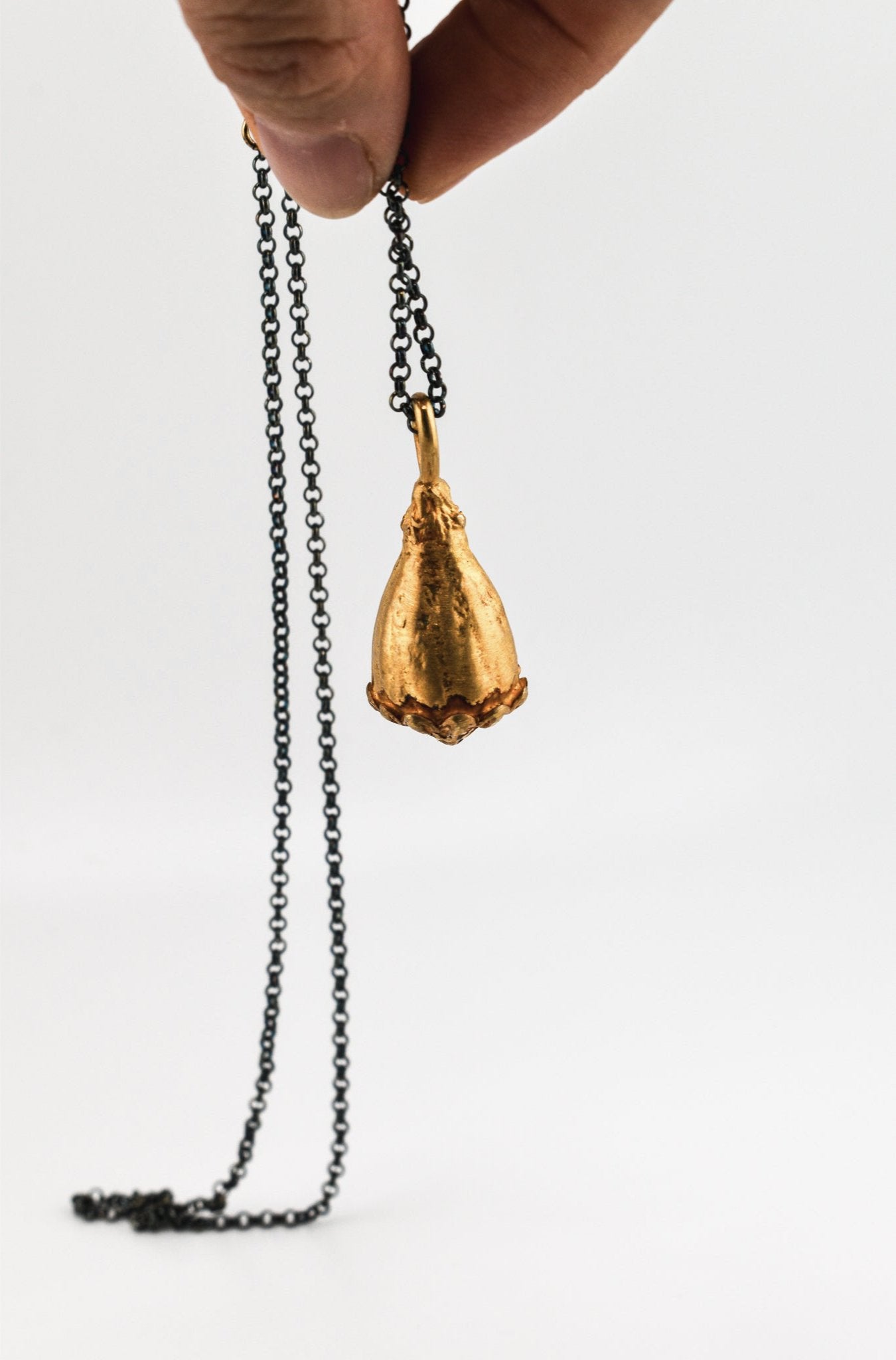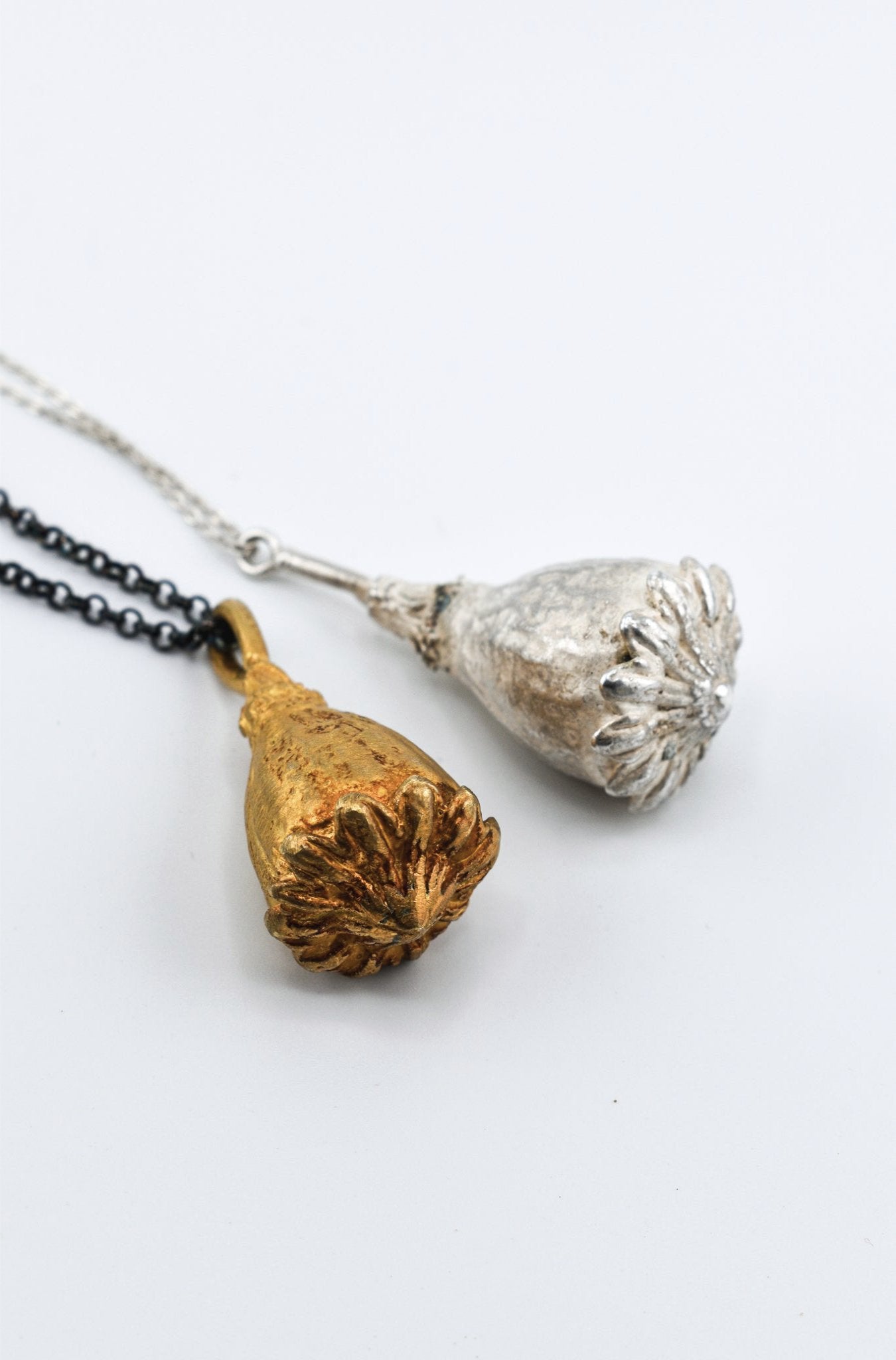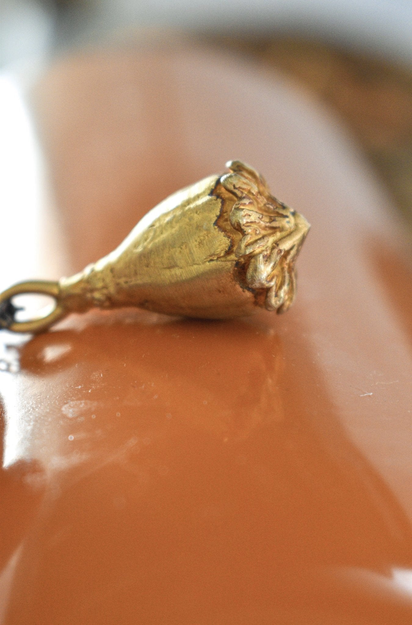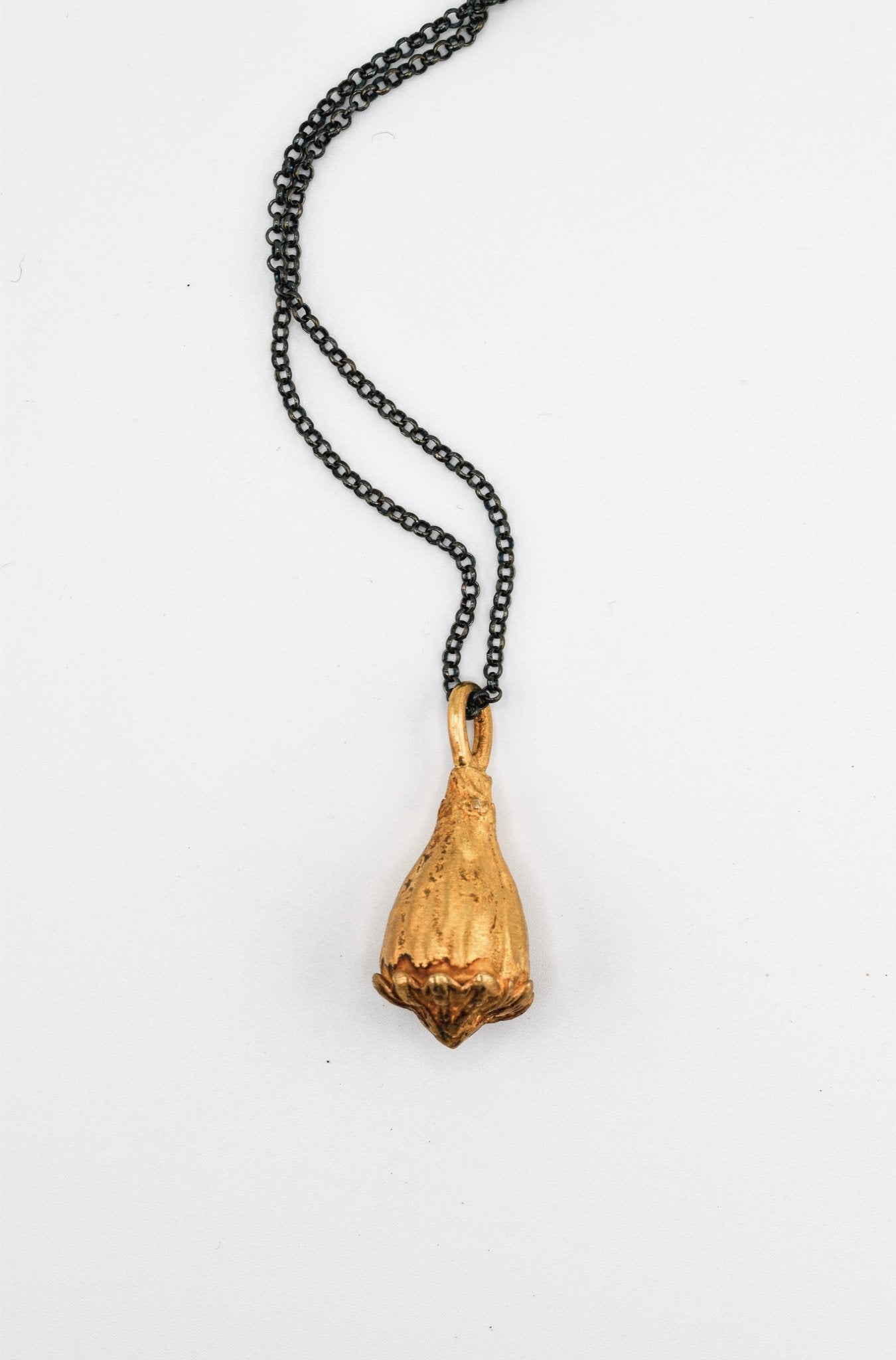 collar de amapola color dorado y cadena de acero