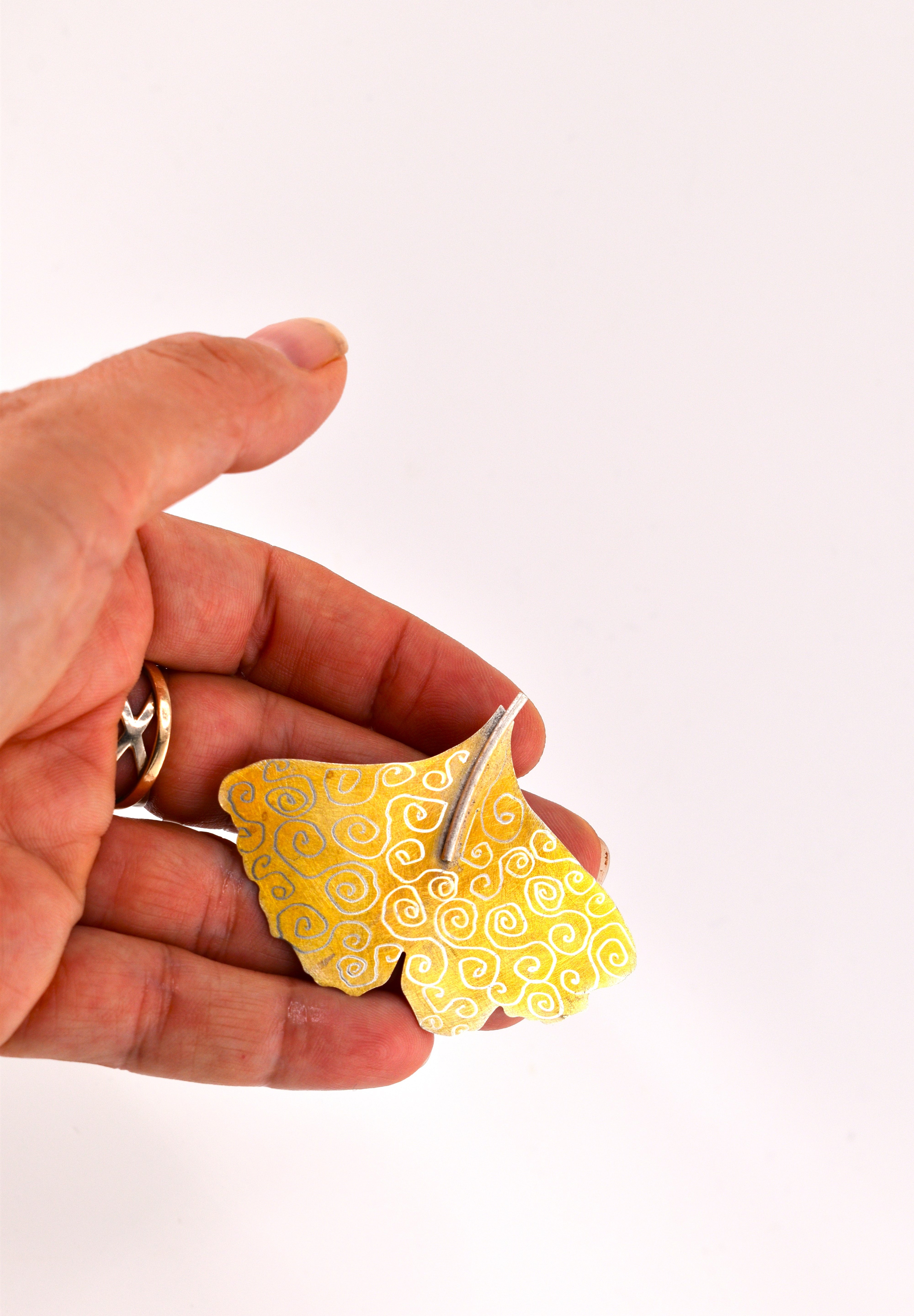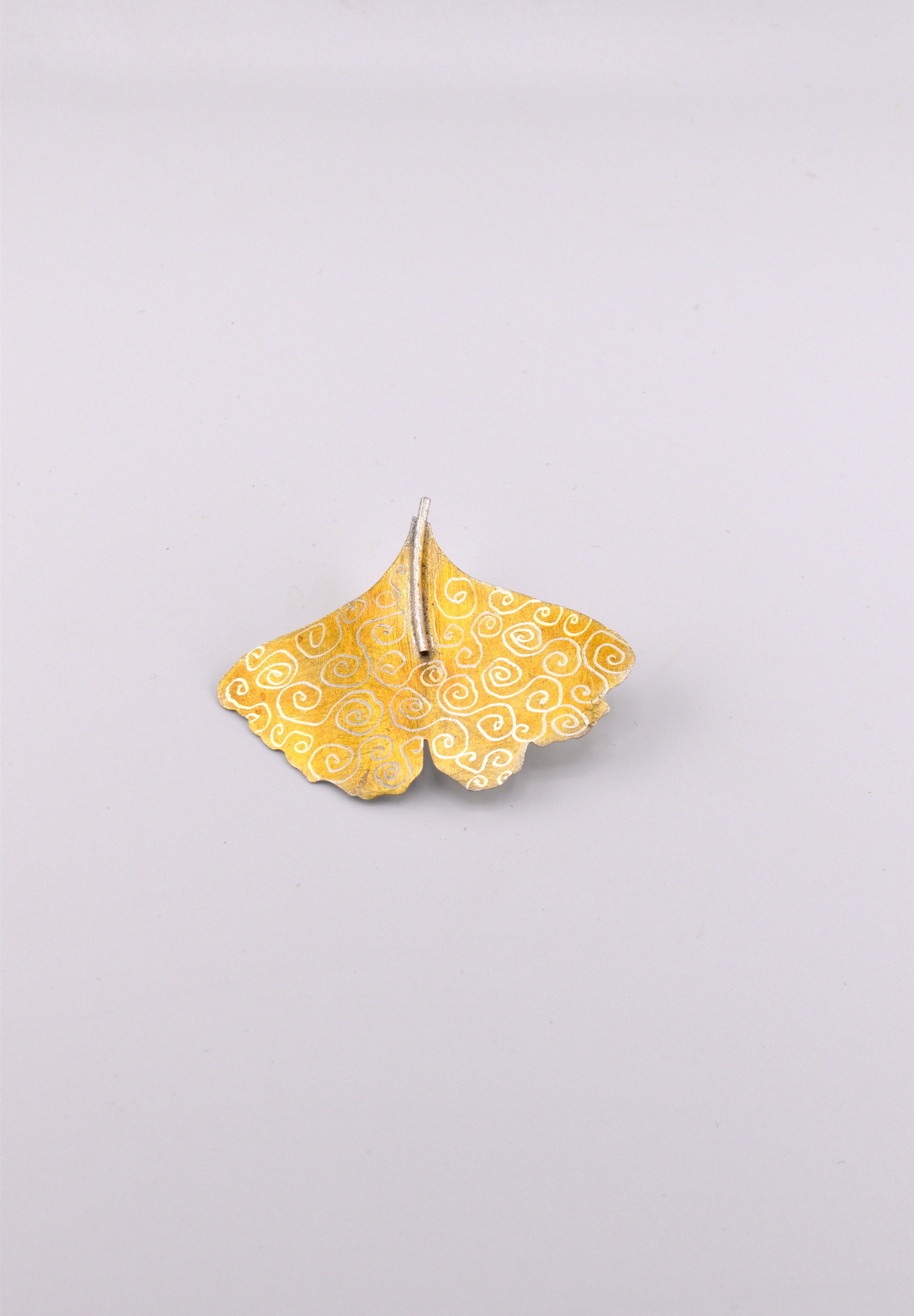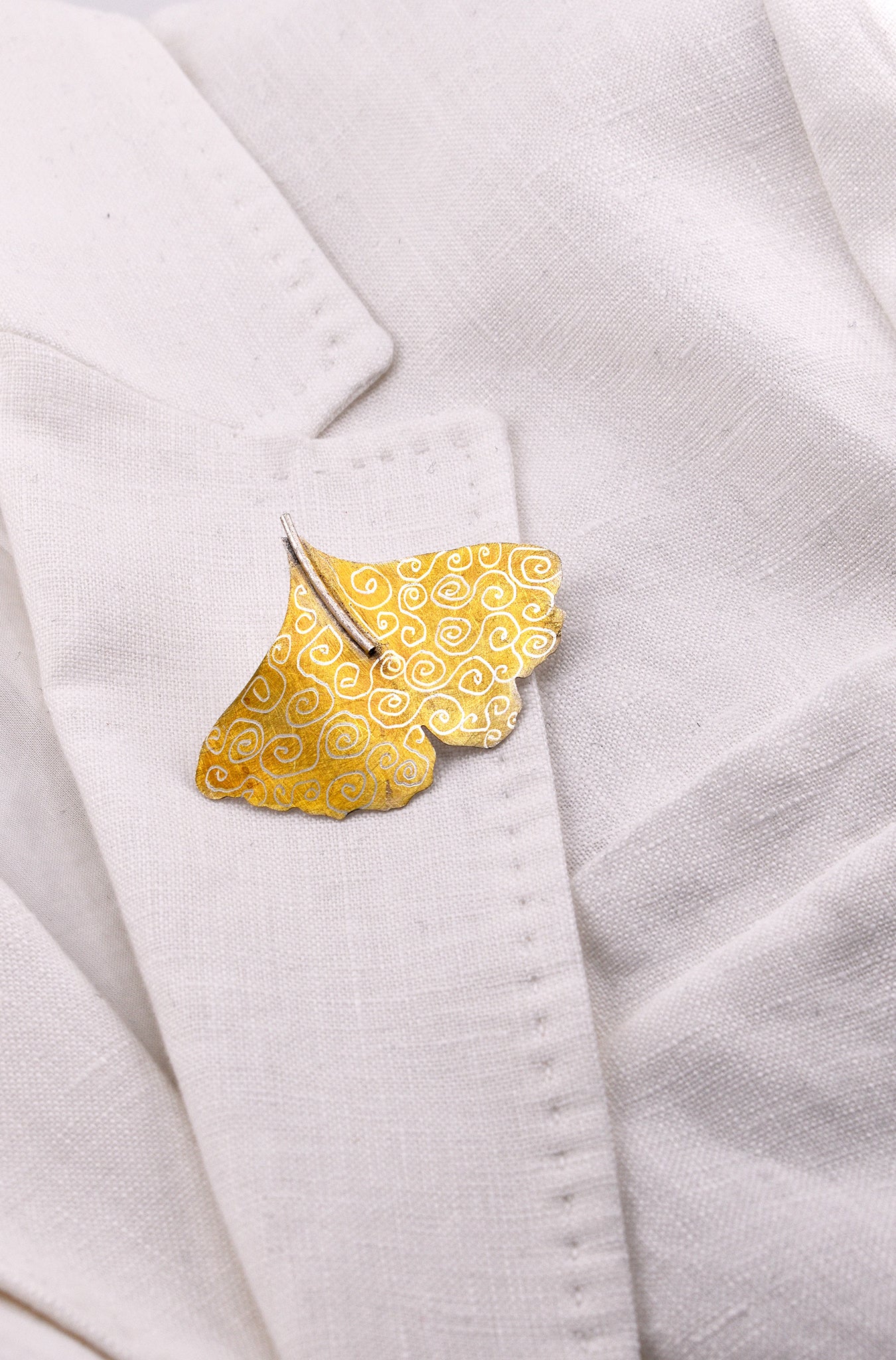 The brooch from the Flower collection is made entirely of gold-plated silver with the addition of a white pearl.