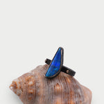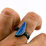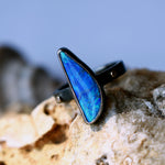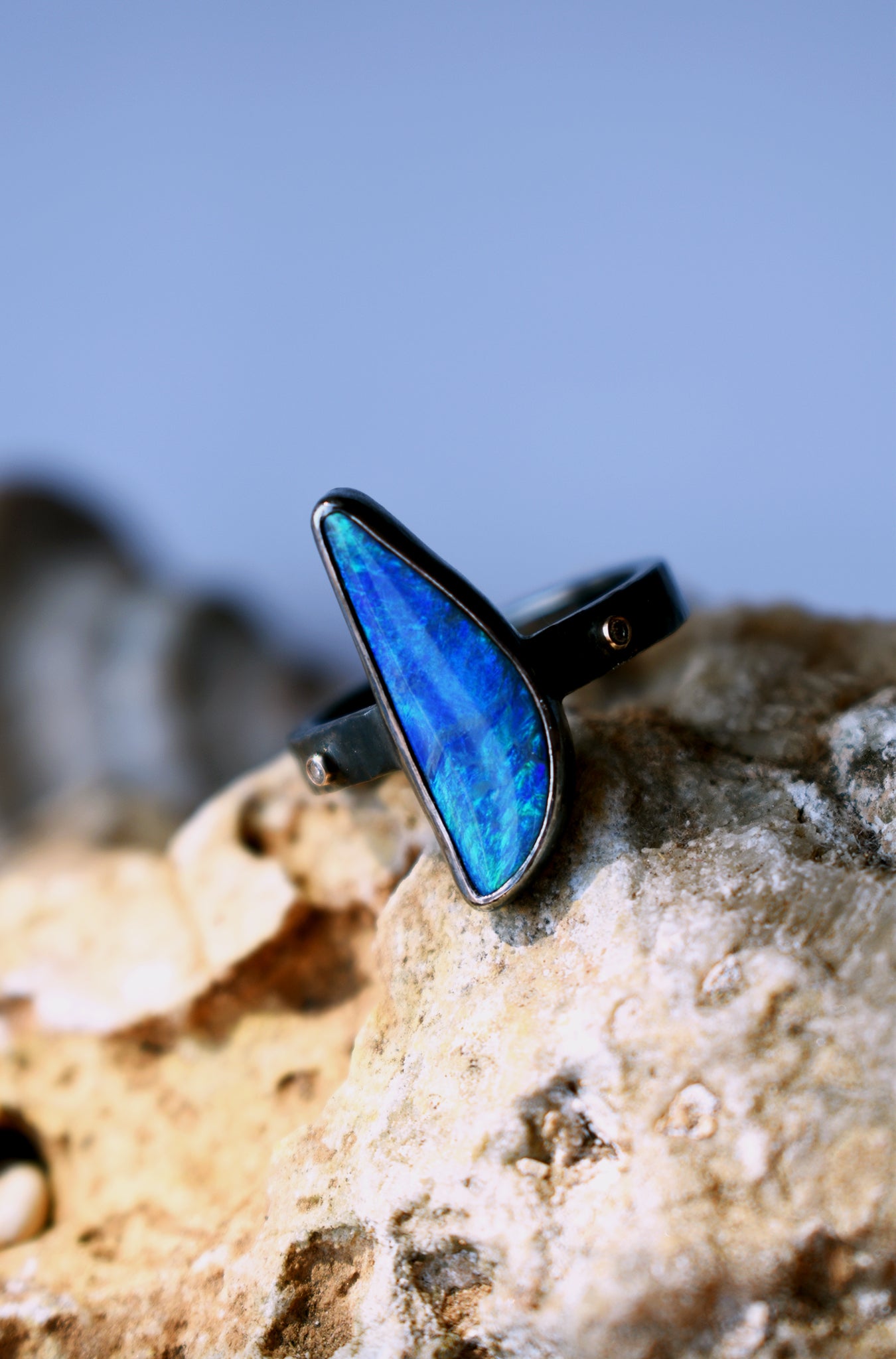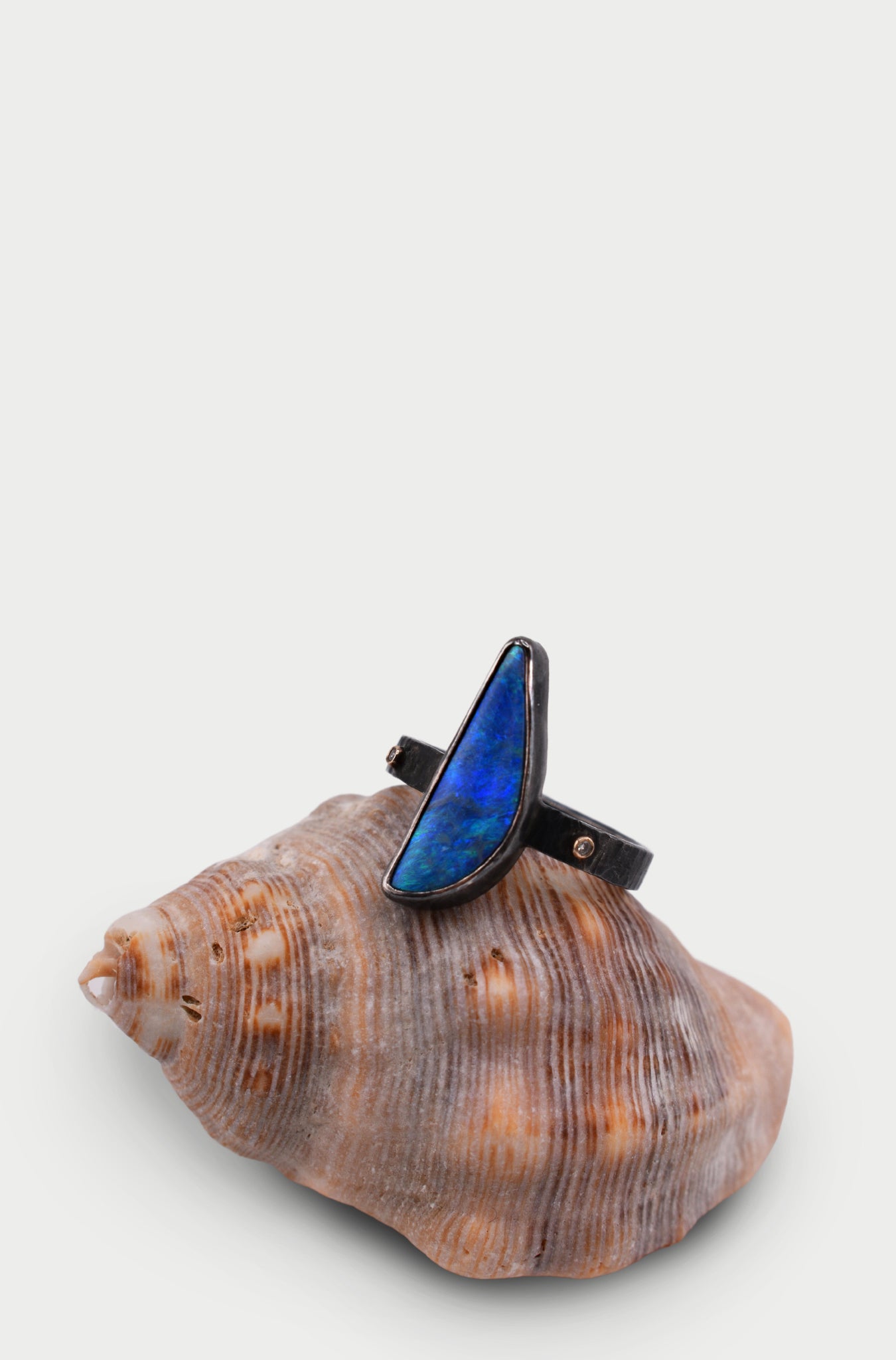 Ópalo - Anillo de plata oxidada con ópalo y diamantes