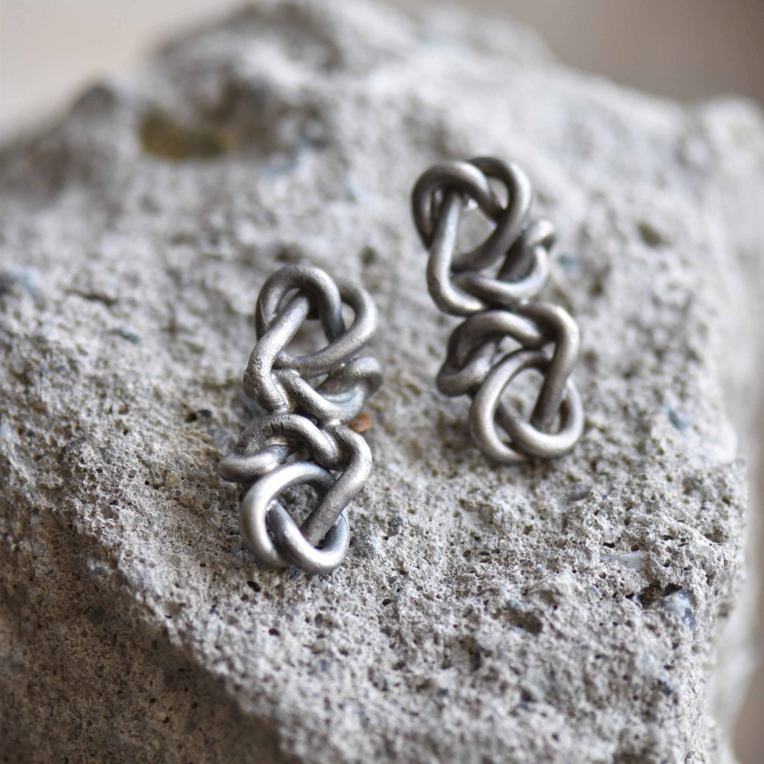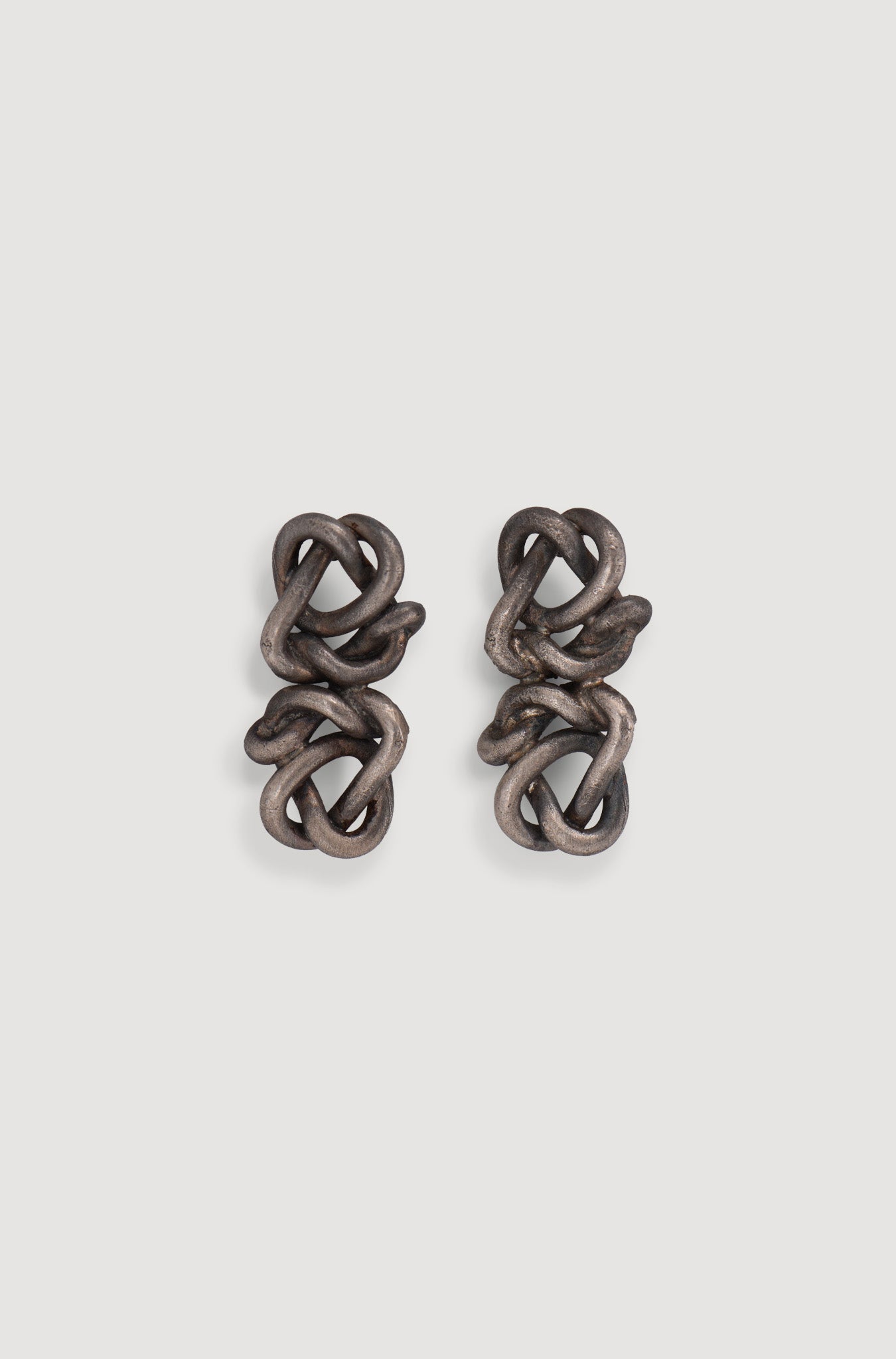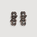Kolczyki Ravel proste i miękkie w formie, wykonane ze srebra oksydowanego.