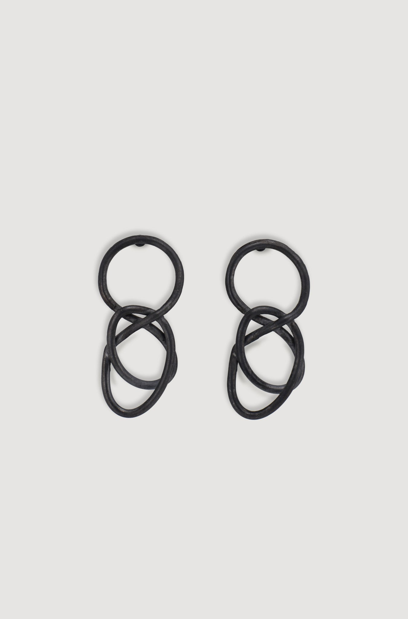 Kolczyki Ravel proste i miękkie w formie, wykonane ze srebra oksydowanego.