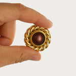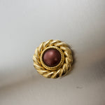 Broche vintage redondo con una perla marron. Diseño con estilo retro.
