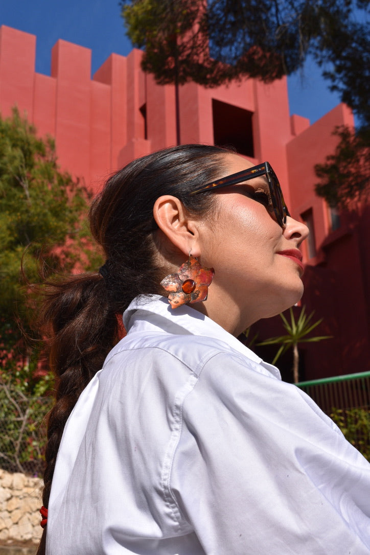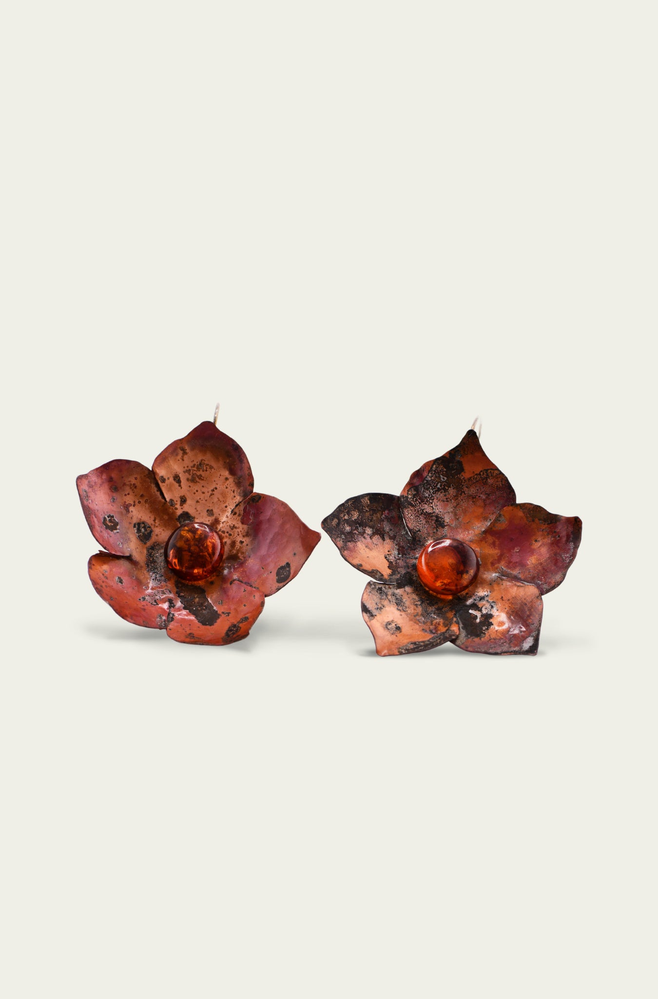 Kolczyki z kolekcji Flower to nietuzinkowy dodatek, który ożywi każdą stylizacje i nada jej wyjątkowy charakter. Zostały wykonane z miedzi, wnętrze zdobi naturalny bursztyn.