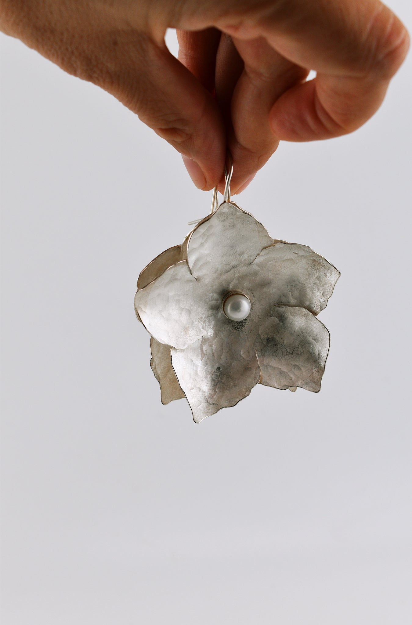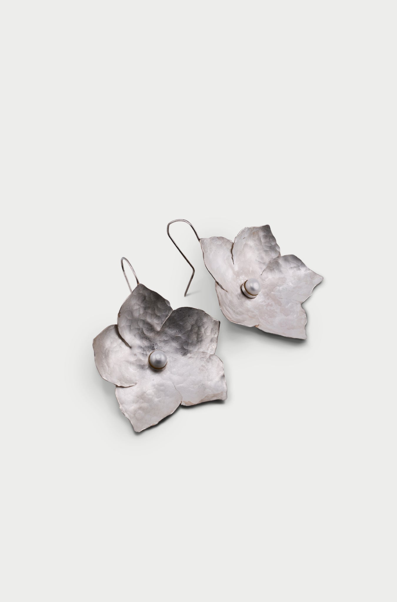 Kolczyki z kolekcji Flower zostały wykonane ze srebra ozdobione wewnątrz naturalną perłą.