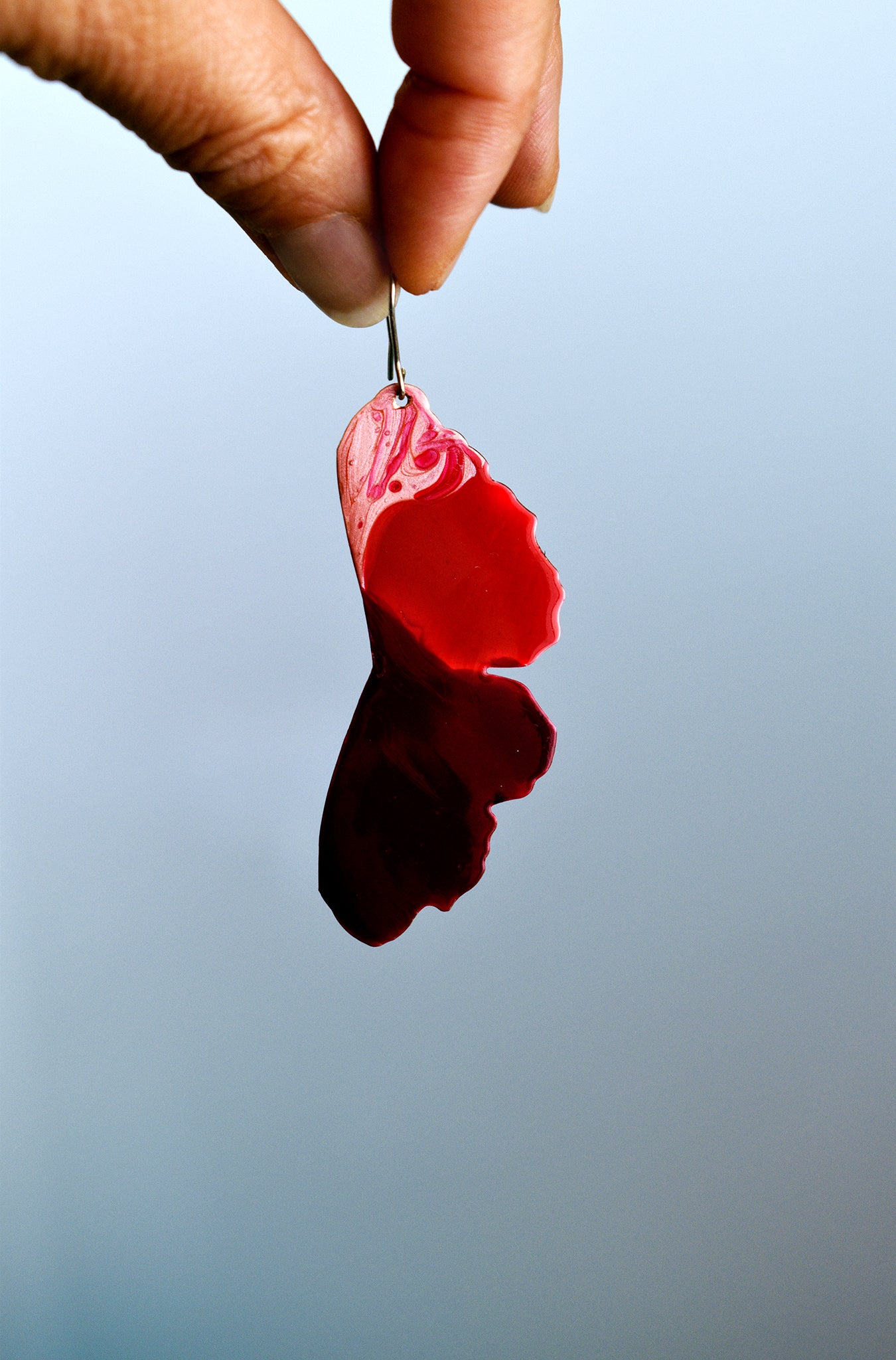 Kolczyki ze srebrnymi zapięciami wykonane z miedzi pokrytej emalią.