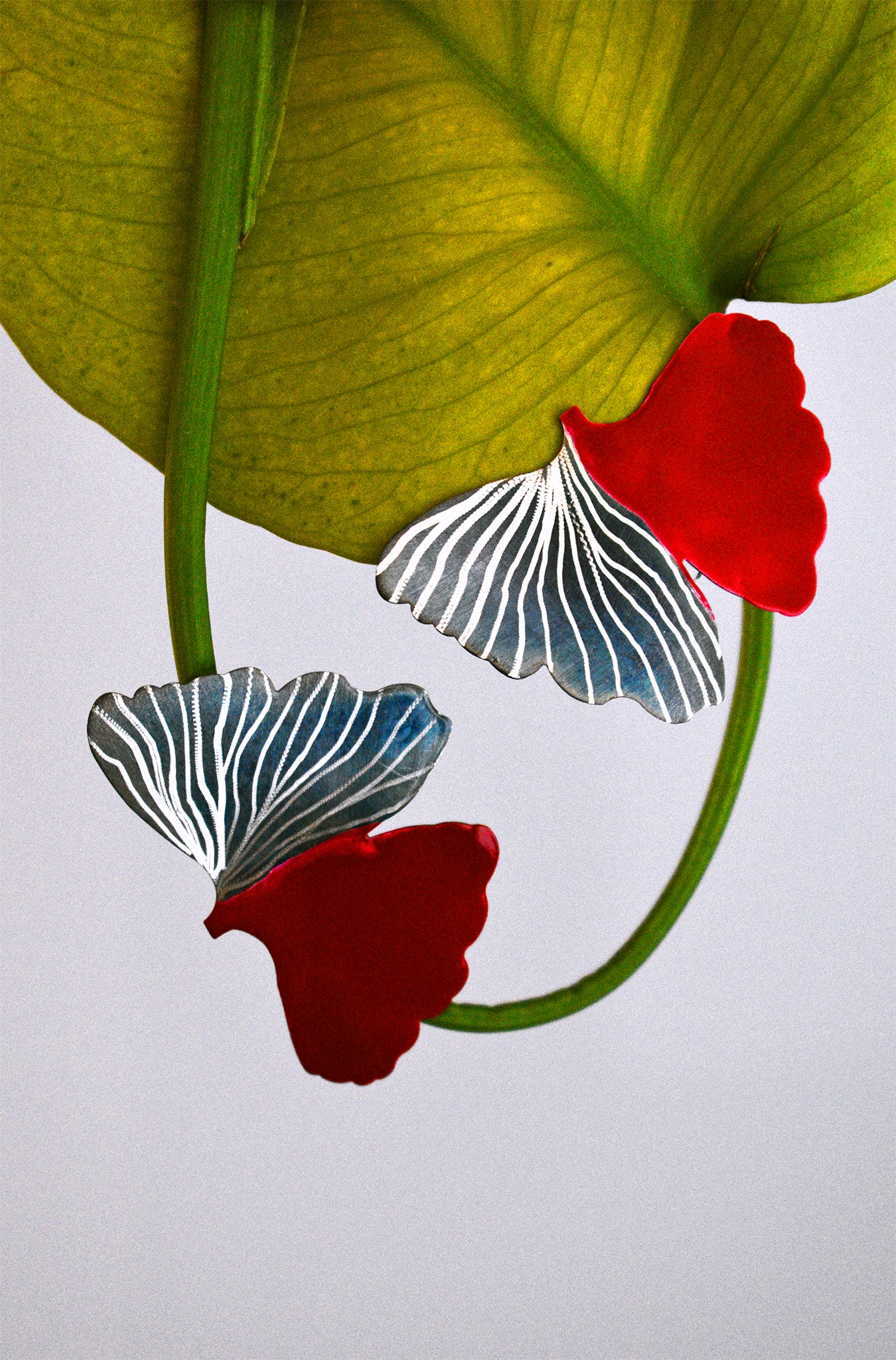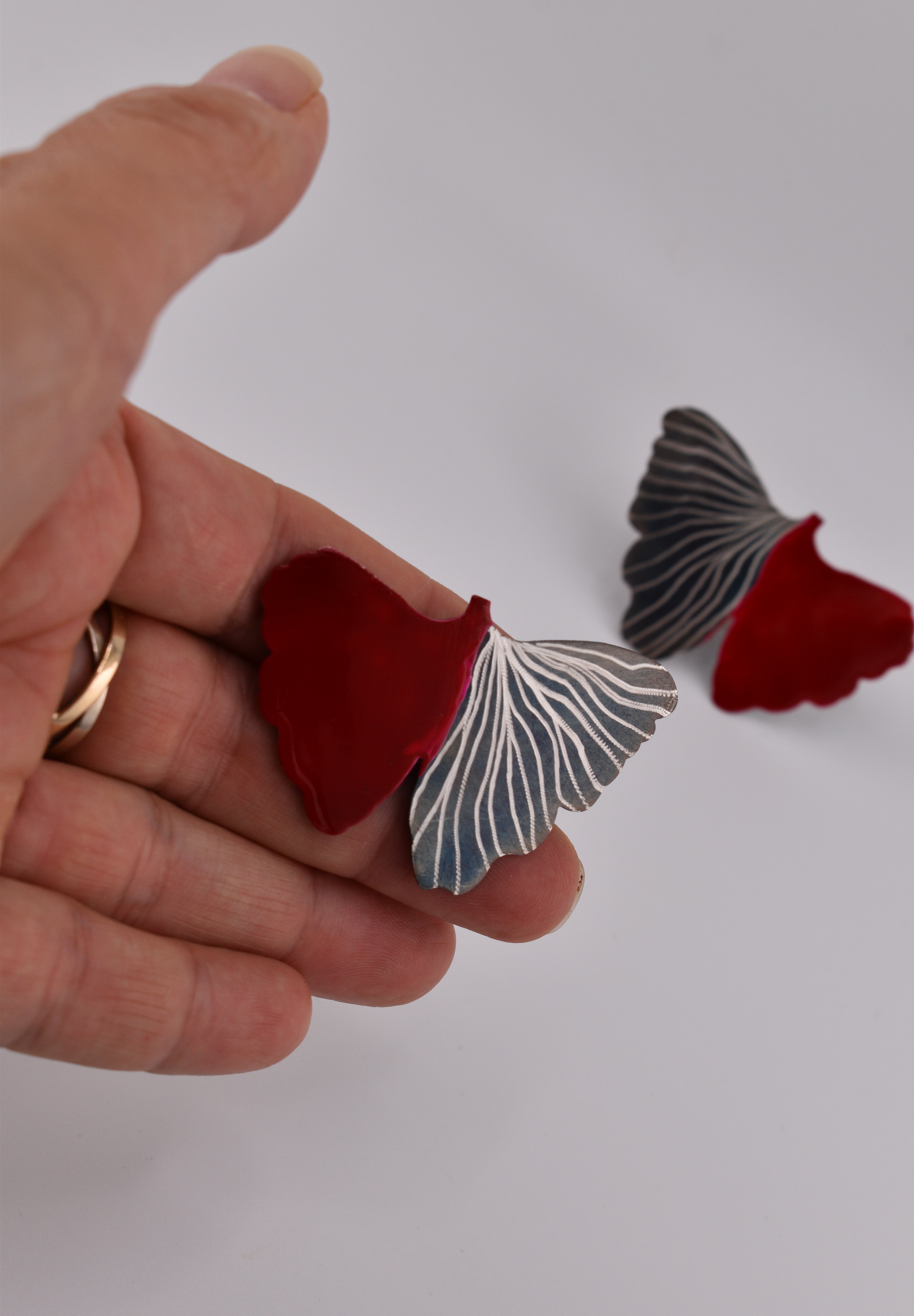 Kolczyki klipsy ze srebrnymi zapięciami wykonane ze srebra i częściowo pokryte emalią.