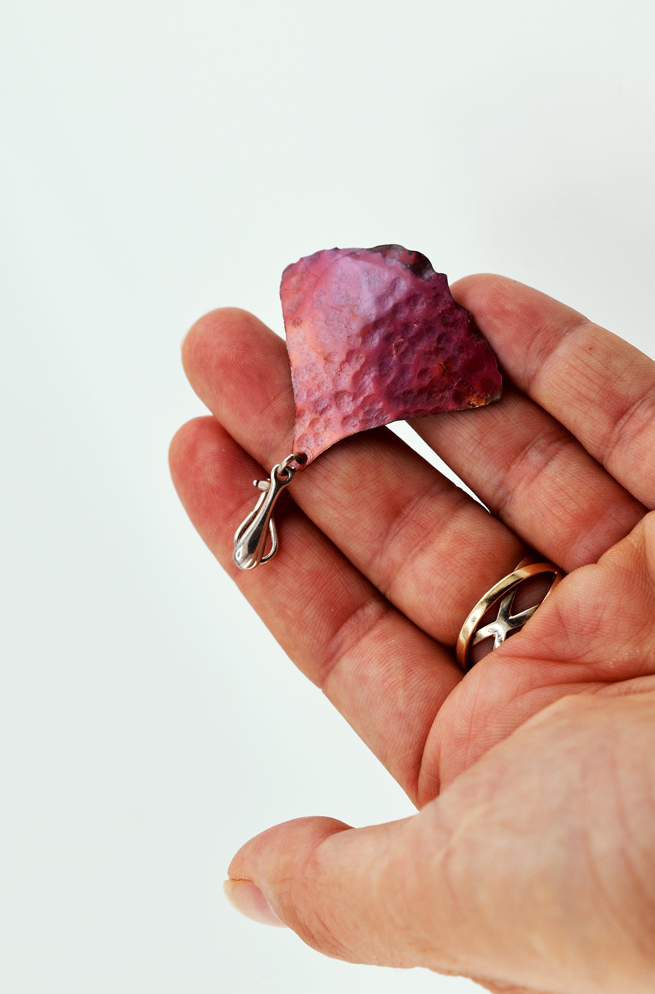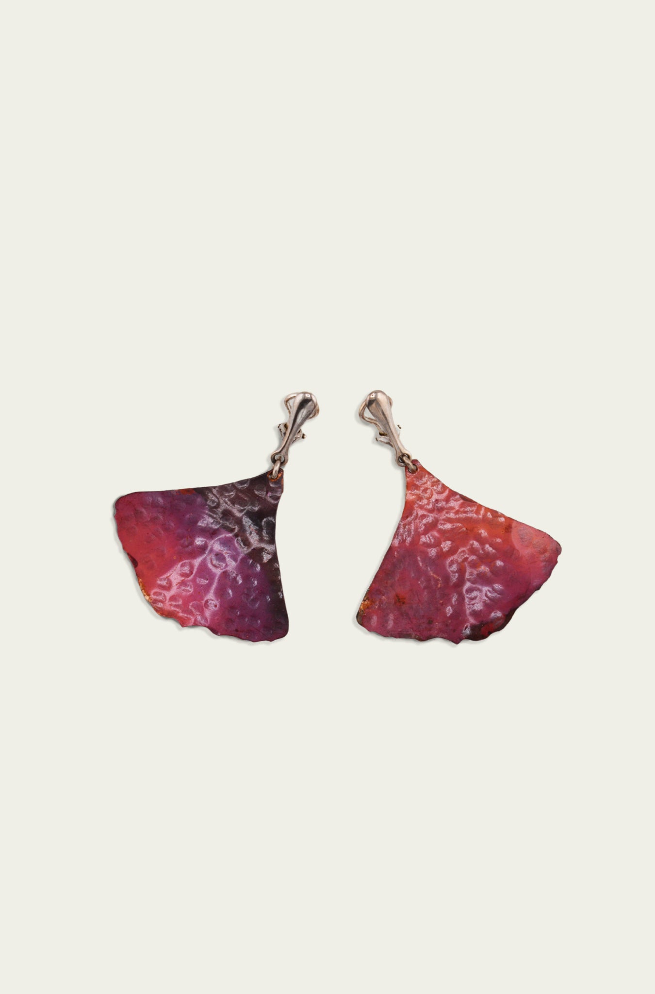 Garden - klipsy miedziane emaliowane czerwone ze srebrnym zapięciem