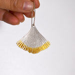 Kolczyki wiszące wykonane w całości ze srebra, częściowo pozłacane.