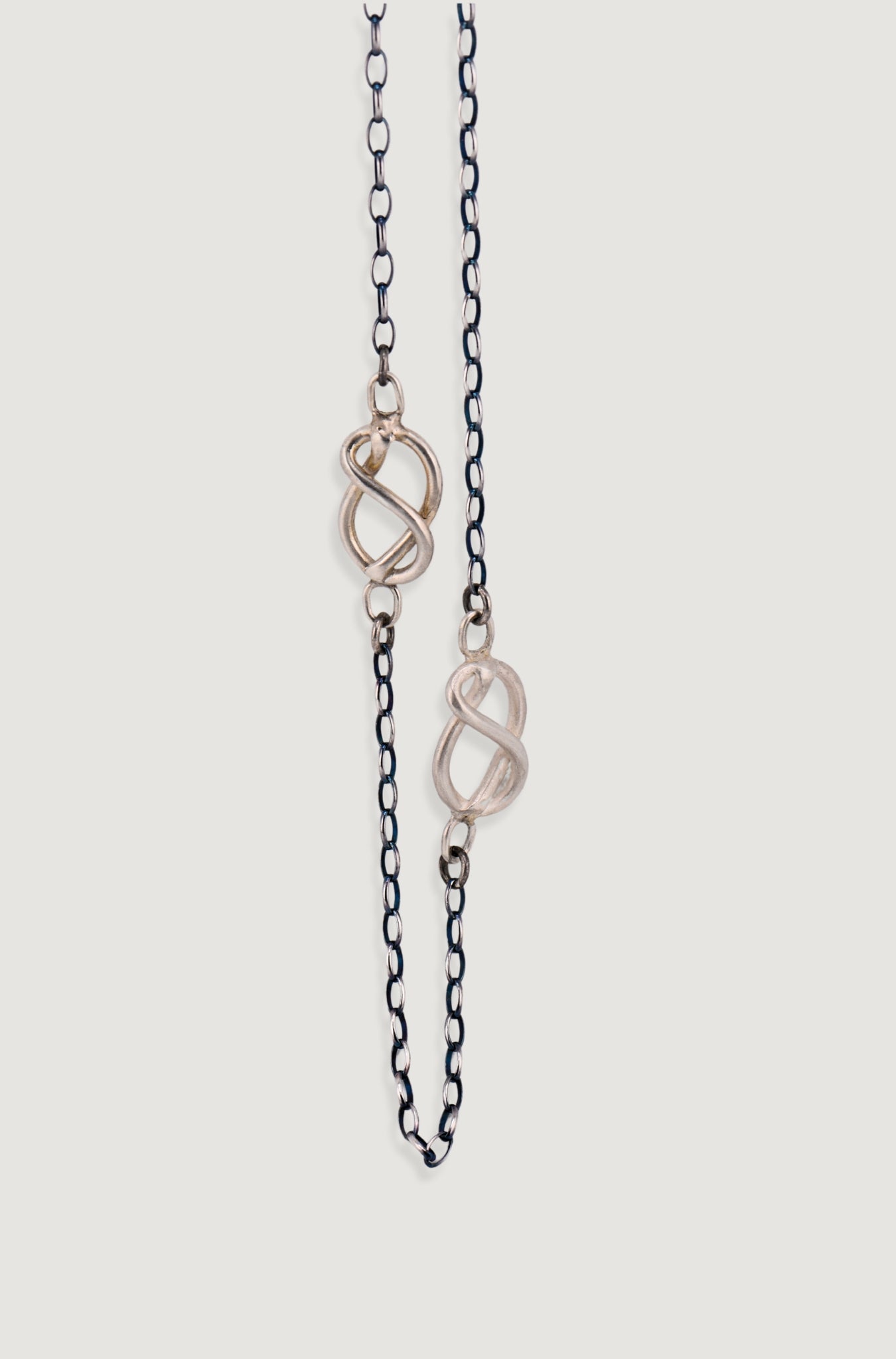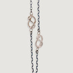Naszyjnik z kolekcji Ravel wykonany ze srebra oksydowanego i stalowej linki jubilerskiej.